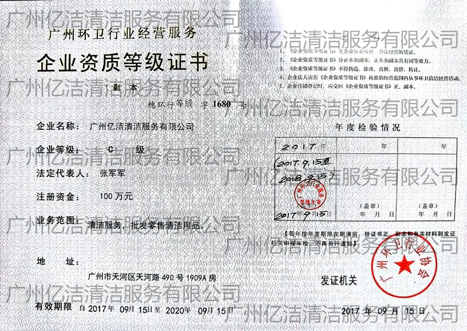 廣州億潔清潔服務有限公司是經廣州市工商行政管理局批準成立的(注冊資本:100萬元人民幣)。具有獨立法人資質。公司成立2015年,公司具備完善的管理體系和高素質管理隊伍,擁有特種技術人員33名,保潔服務人員上萬名,覆蓋廣州市,能及時調配并快速投入高效運行。我們的每個員工都經過公司的嚴格篩選,嚴格培訓,定期培訓后持證上崗以保證服務品質,保障客戶的權利,利益,形象等不受損失。 廣州億潔清潔公司是一家設備齊全,技術強大的綜合型清潔服務公司,為客戶提供完善服務尊定了堅定的基礎。 司于2010年全面推行了ISO9001質量管理體系認證和ISO14001國際環(huán)保體系認證。先后獲得廣州高層建筑外墻清洗維修作業(yè)【安全資質證書】、【廣州環(huán)衛(wèi)企業(yè)等級證書C級資質】、廣州疾控中心頒發(fā)的【四害消殺服務資質證】、【空氣治理A級資質】、中國石材協(xié)會頒發(fā)的【石材資質B級資質】等。 廣州億潔清潔服務有限公司致力于打造專業(yè)、實惠、靠譜的保潔服務公司,把專業(yè)的事情交給專業(yè)的我們,您放心! 億潔清潔服務項目: 廣州保潔服務:新建樓宇、別墅、酒店、醫(yī)院、辦公樓、賓館、企事業(yè)單位廠房竣工后開荒及裝修后精細保潔.工程保潔服務。 廣州物業(yè)托管:為廣州市各大企事業(yè)單位、賓館、政府機關、小區(qū)物業(yè)、酒店及廠房提供專業(yè)化保潔、園林、設施維護等管理服務。 廣州高空作業(yè):高空玻璃幕...[詳情]